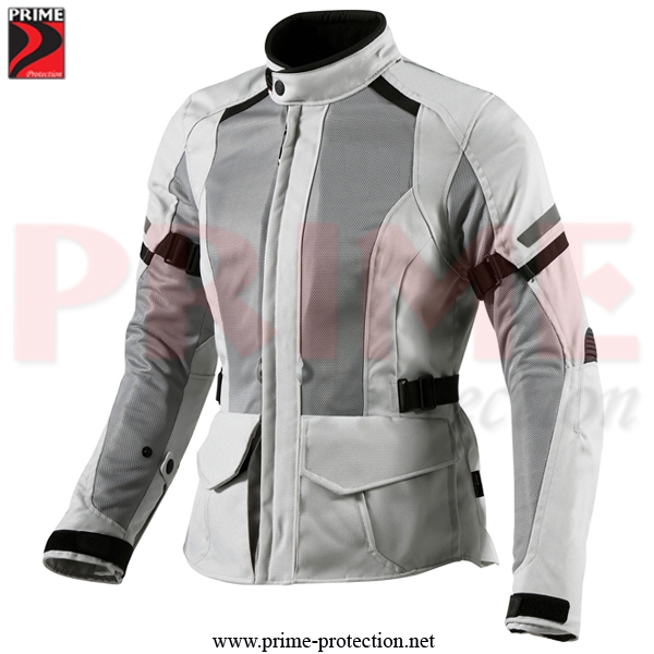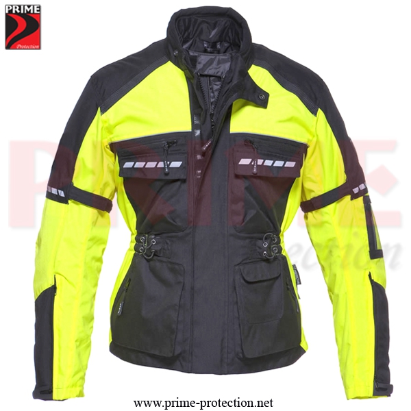 High Density Nylon Outer shell material, Reflective panel for night visibility with Airflow Ventilation Panels & Adjustable ladies width YKK Zipper CE Level 2 Protector on shoulder, Elbow & Back, removable thermal lining
