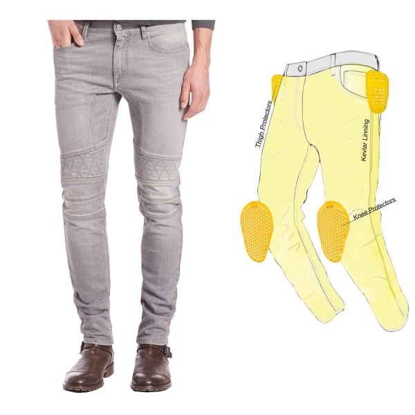 Fashionable ribbed style bikers Kevlar lining jean